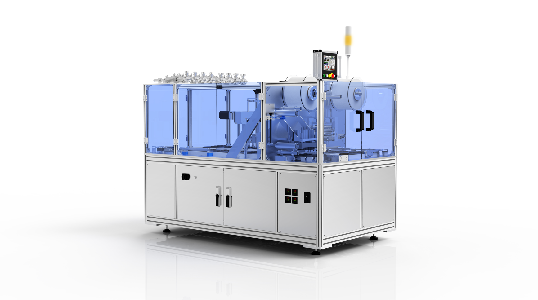 1、設備使用預裁切卷膜,杯子頂膜提前沖裁,留點斷點。